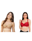 Ksvry Combo Pack of Two Women's Full Cup Push up Bra Maroon and Brown Color