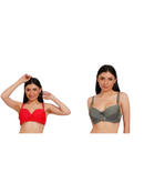 Ksvry Combo Pack of Two Women's Full Cup Underwired Push up Bra Red and Olive Green Color , designed for support and comfort, it features full coverage, underwire support, and push-up padding to enhance your natural shape. Adjustable straps ensure a perfect fit, making it ideal for everyday wear. Elevate your lingerie collection with this stylish and comfortablel bra.