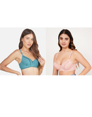 Ksvry Combo Pack of Two Women's Lace Embroidery Bra Teal & Peach Color