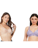 Ksvry Combo Pack of Two Women's Padded Comfort Bra Skin & Levender Color