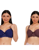 Ksvry Combo Pack of Two Women's Plain With Lace Bra Blue & Brown Color
