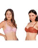 Ksvry Combo Pack of Two Women's Plain With Lace Bra Pink and Brown Color offers a blend of comfort and elegance with soft fabric, delicate lace detailing, and supportive underwired cups. Designed to fit C cups, it provides a flattering shape, adjustable straps, and all-day comfort. Perfect for everyday and occasion wear.