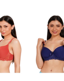 Ksvry Combo Pack of Two Women's Plain With Lace Bra Rusty & Blue Color