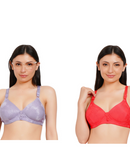 Ksvry Combo Pack of Two Women's Single Padded Bra Lavender & Red Color