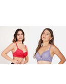Ksvry Combo Pack of Two Women's Basic Lace Wired Pushup Bra Red and Levender Color. Featuring soft padding, supportive underwire, and elegant lace detailing, it offers a flattering lift and a feminine touch. With adjustable straps and a secure fit, it's perfect for everyday wear or special occasions. Stylish, supportive, and effortlessly comfortable.