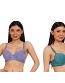 Ksvry Combo Pack of Two Women's Pearl T-Shirt Bra Lavender and Teal Color, offers everyday comfort with a smooth, seamless finish and natural lift. Featuring soft padding, supportive underwire, and breathable fabric, it's perfect under fitted tops. Adjustable straps and a secure fit make it a must-have for daily wear and effortless style.