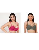 Ksvry Combo Pack of Two Women's Wired Bra Dark Pink & Olive Green Colo