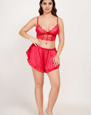 V Neck Lace Mesh Shorts Sets