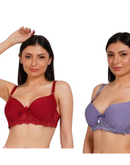 Ksvry Combo Pack of Two Women's Lace's Bra Red and Light Purple Color
