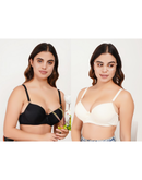 Ksvry Combo Pack of Two Women's Pearl T-Shirt Bra Black and Light Yellow Color, offers everyday comfort with a smooth, seamless finish and natural lift. Featuring soft padding, supportive underwire, and breathable fabric, it's perfect under fitted tops. Adjustable straps and a secure fit make it a must-have for daily wear and effortless style.