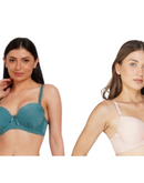 Ksvry Combo Pack of Two Women's Pearl T-Shirt Bra Teal and Light Orange Color, offers everyday comfort with a smooth, seamless finish and natural lift. Featuring soft padding, supportive underwire, and breathable fabric, it's perfect under fitted tops. Adjustable straps and a secure fit make it a must-have for daily wear and effortless style.