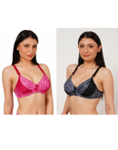 Ksvry Combo Pack of Two Women's Wired Bra Bright Pink and Black Color