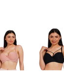 Ksvry Combo Pack of Two Women's Wired Padded Bra Pink and Black Color