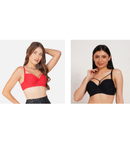 - Ksvry Combo Pack of Two Women's Wired Padded Bra Red and Black Color