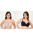 Ksvry Combo Pack of Two Women's Wired Pushup Bra Beige and Black Color