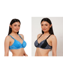 Ksvry Combo Pack of Two Women's Wired T-Shirt Bra Blue and Black Color
